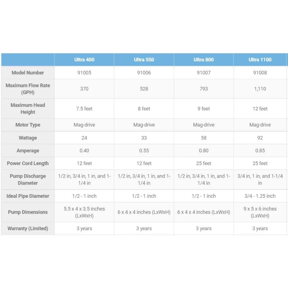 The Ultra Pump’s magnetically driven (mag drive) motor technology makes this pump extremely energy efficient — saving hundreds of dollars over traditional pumps — and the oil-free design helps prevent pond contamination.