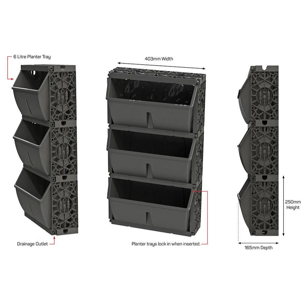 The new planter tray is thinner and allows for 6 litres of soil media ensuring healthy plant growth and moisture retention.