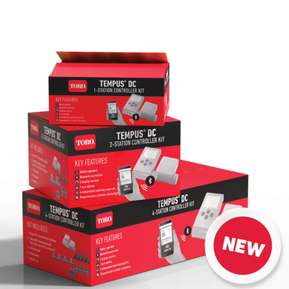 The Tempus™ DC Kit offers customers the convenience and worry-free purchasing of products needed to kick-start their irrigation project with its complete irrigation controller bundle that includes all components offered at a great value pack price.
