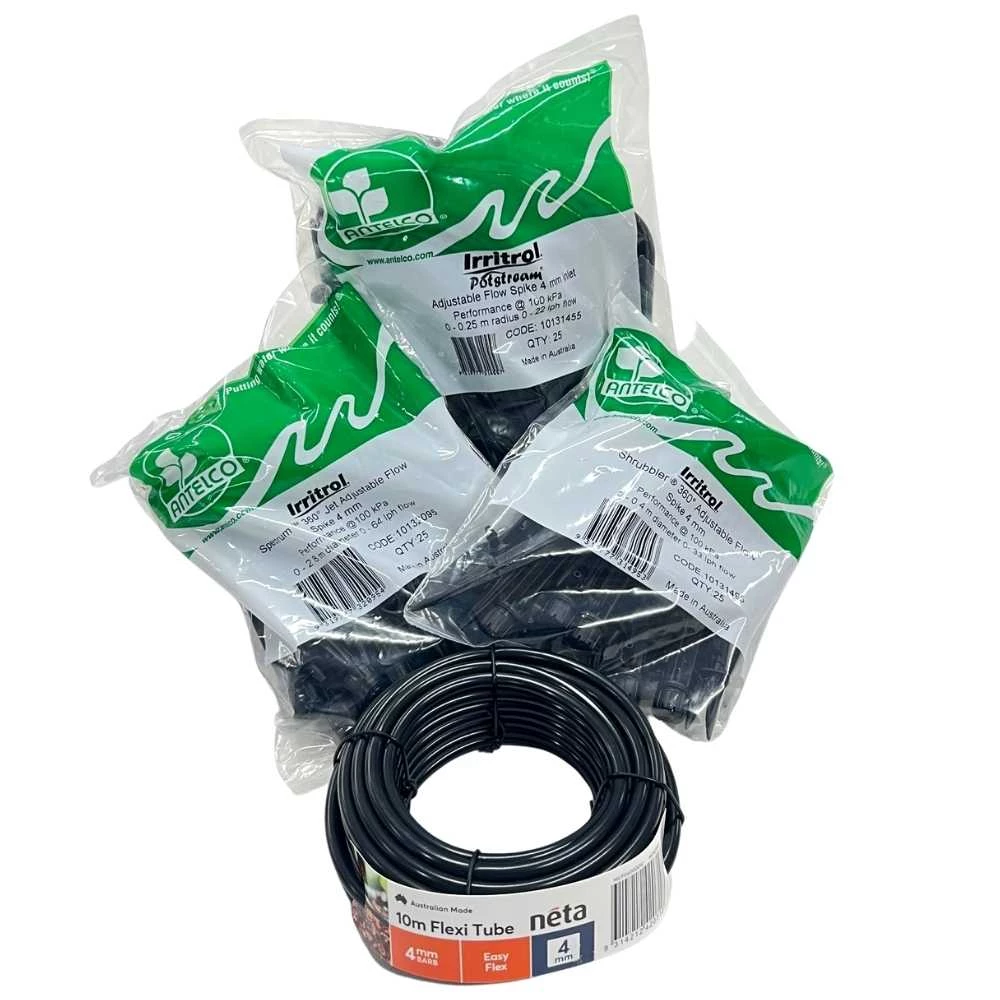 Dural Irrigation has compiled a highly requested bundle for those pot plant enthusiast, requiring a variety of spray & flow rate types with complete control of flow for each spray stake.