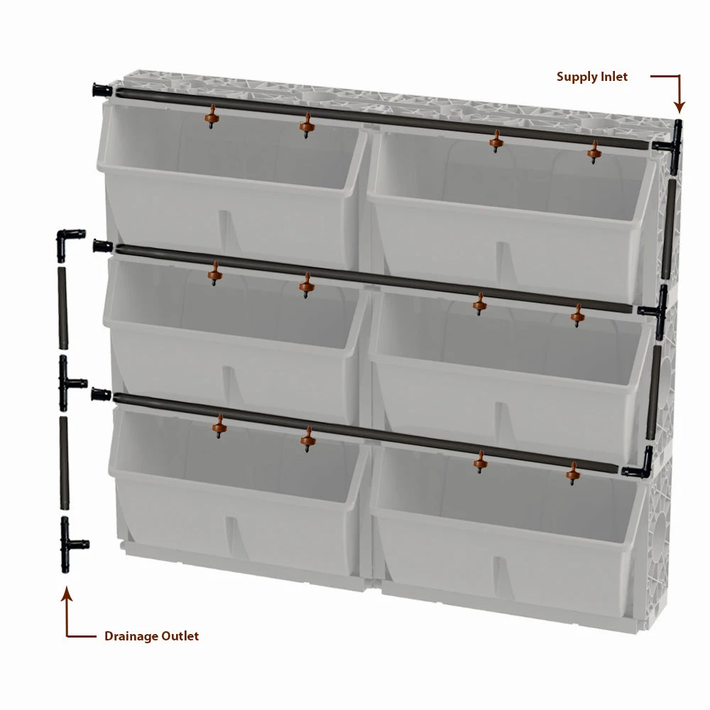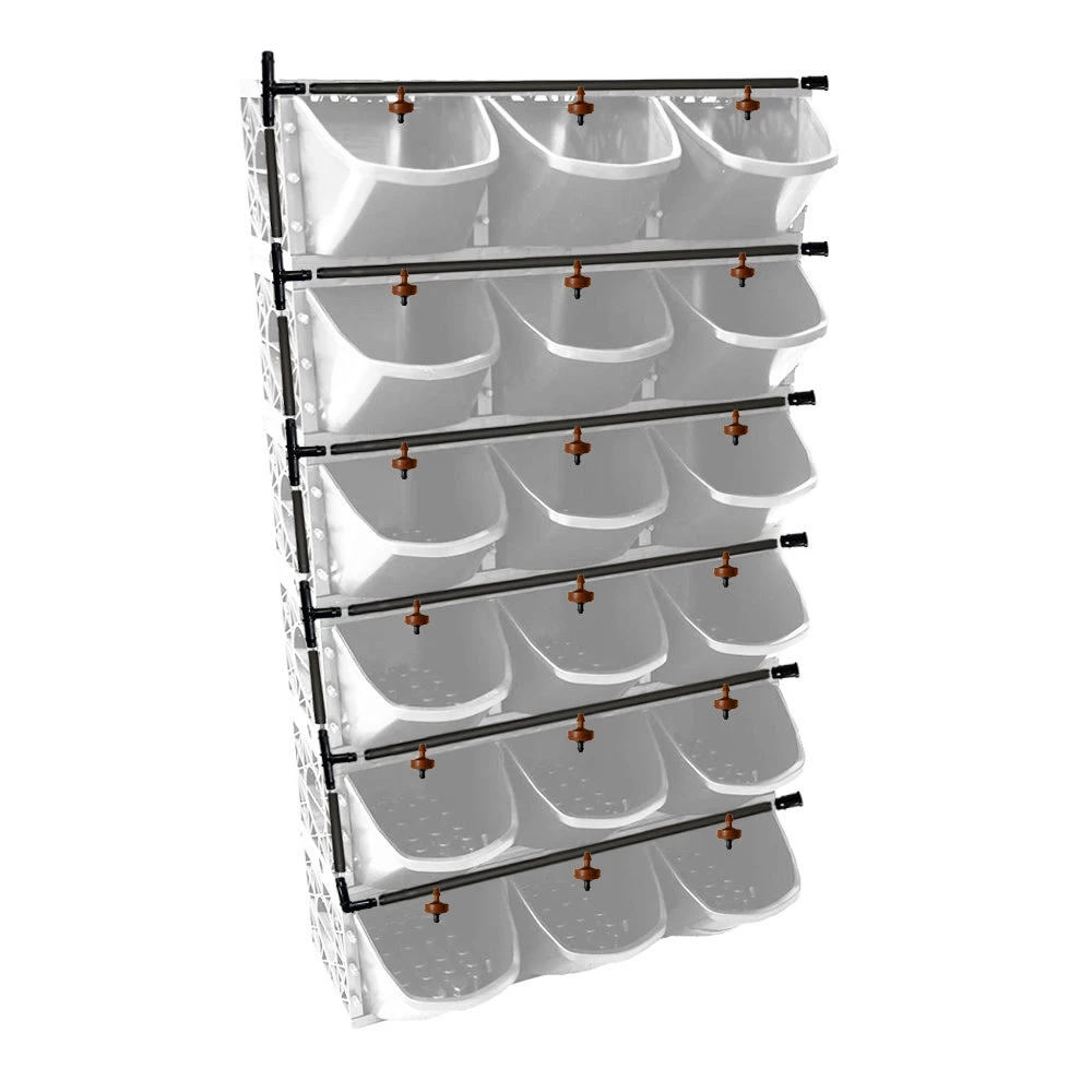 These accessories kits allow you irrigate the pots for your Gro-Wall Vertical Garden set up via a drip system for a full functioning self watering Gro-Wall.