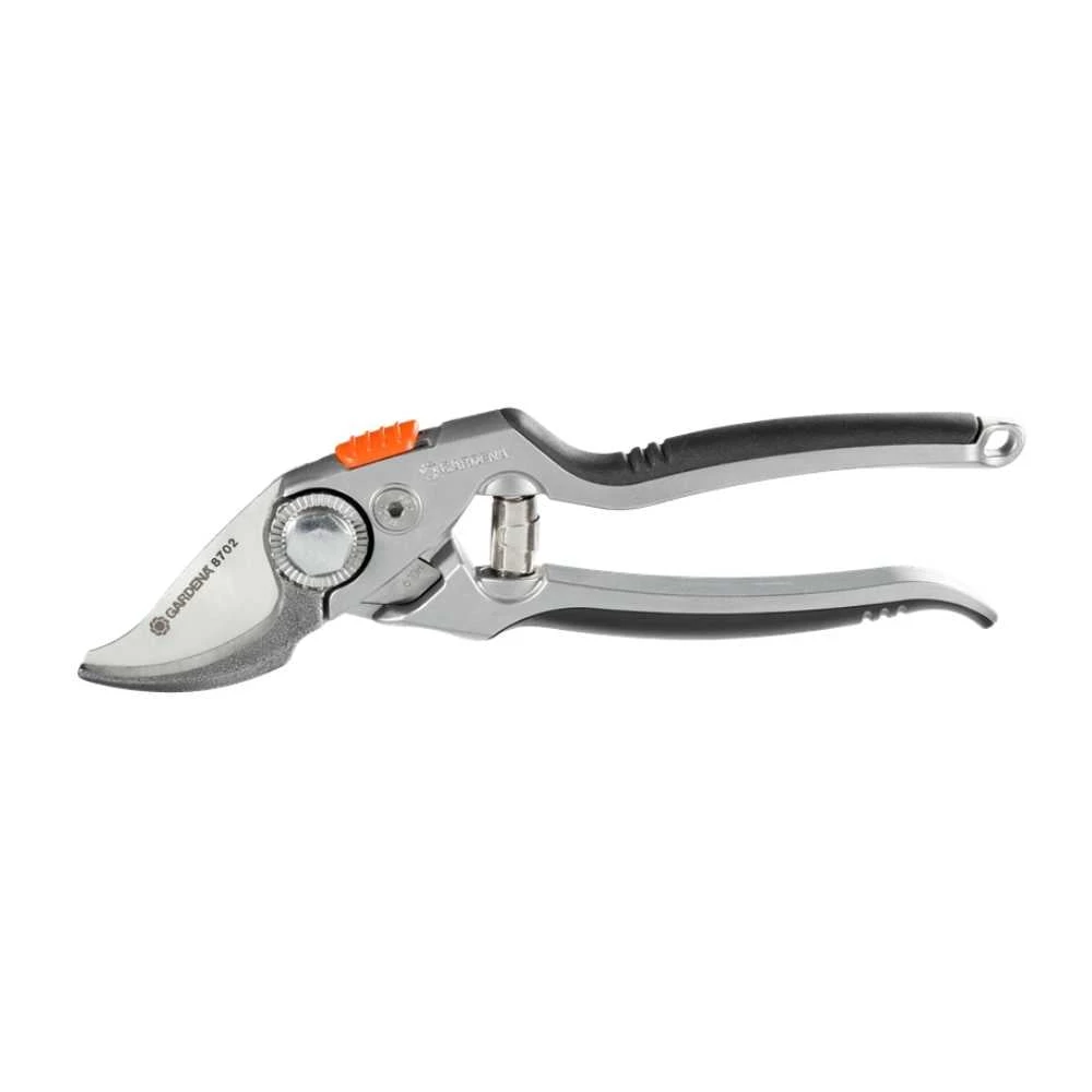 GARDENA Premium Bypass Secateurs are perfect for cutting flowers, young shoots and fresh wood (up to 24mm). Both blade and counter blade are ground and penetrate into the branch simultaneously. The extra narrow, angled cutting head, supports a natural hand position, precise cutting, and optimizes applied power to the cut. The aluminium handles are durable and lightweight and the soft-grip anti-slip components help reduce fatigue and muscle strain. The rust-proof stainless steel upper blade and the forged bottom blade are replaceable and can be sharpened. They are four times ground precision blades for clean smooth cuts. The two handle positions result in greater leverage and precise cutting. Adjustable blade tension, single-hand safety lock, sap groove and wire cutter are all great features. It is made in Germany and comes with a 25-year warranty.
