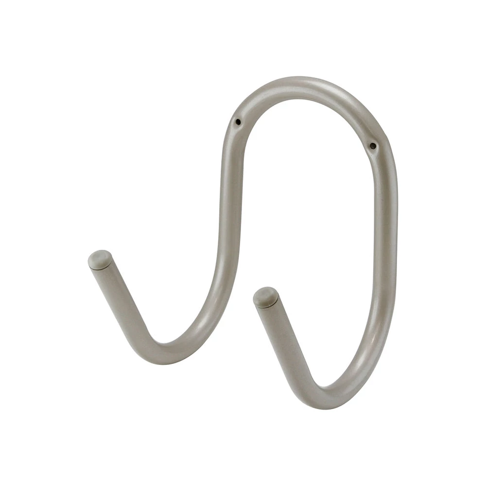 No-rust aluminum hanger which can be easily fixed to walls, fences or posts for tidy storage of ladders, hoses, outdoor chairs, bikes etc.