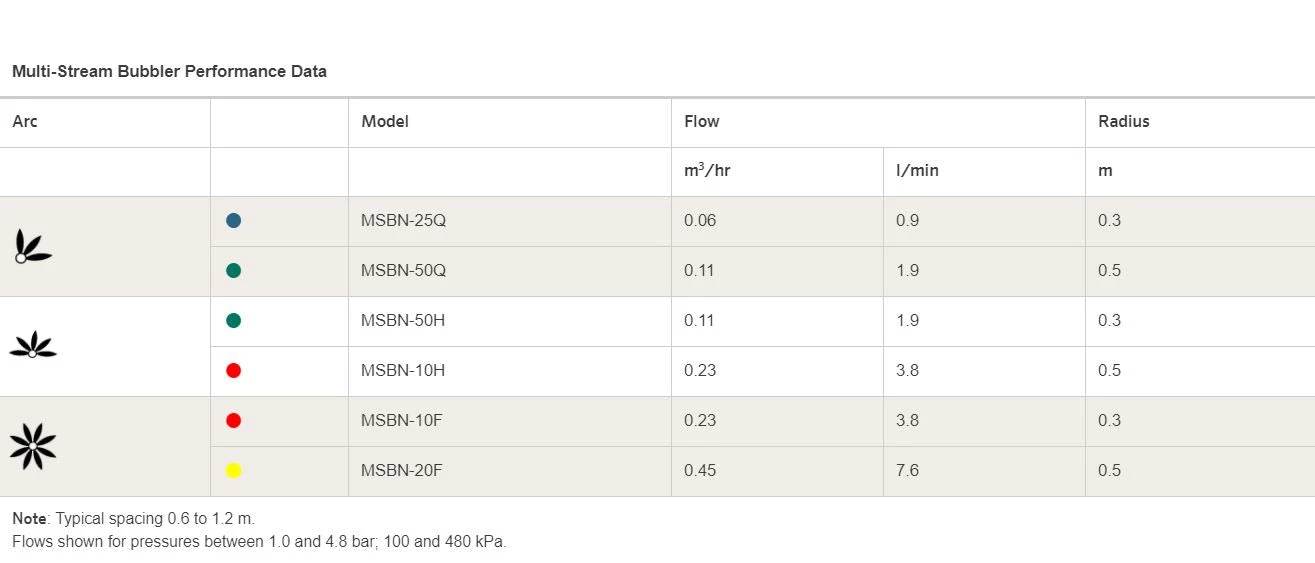 With the ability to compensate for pressure differences, the Hunter bubbler nozzles allow the output of water to remain constant regardless of the input pressure. This allows for accurate application never before achieved in bubblers. The same holds true with the MSBN nozzles, designed for deep watering of larger planted areas.