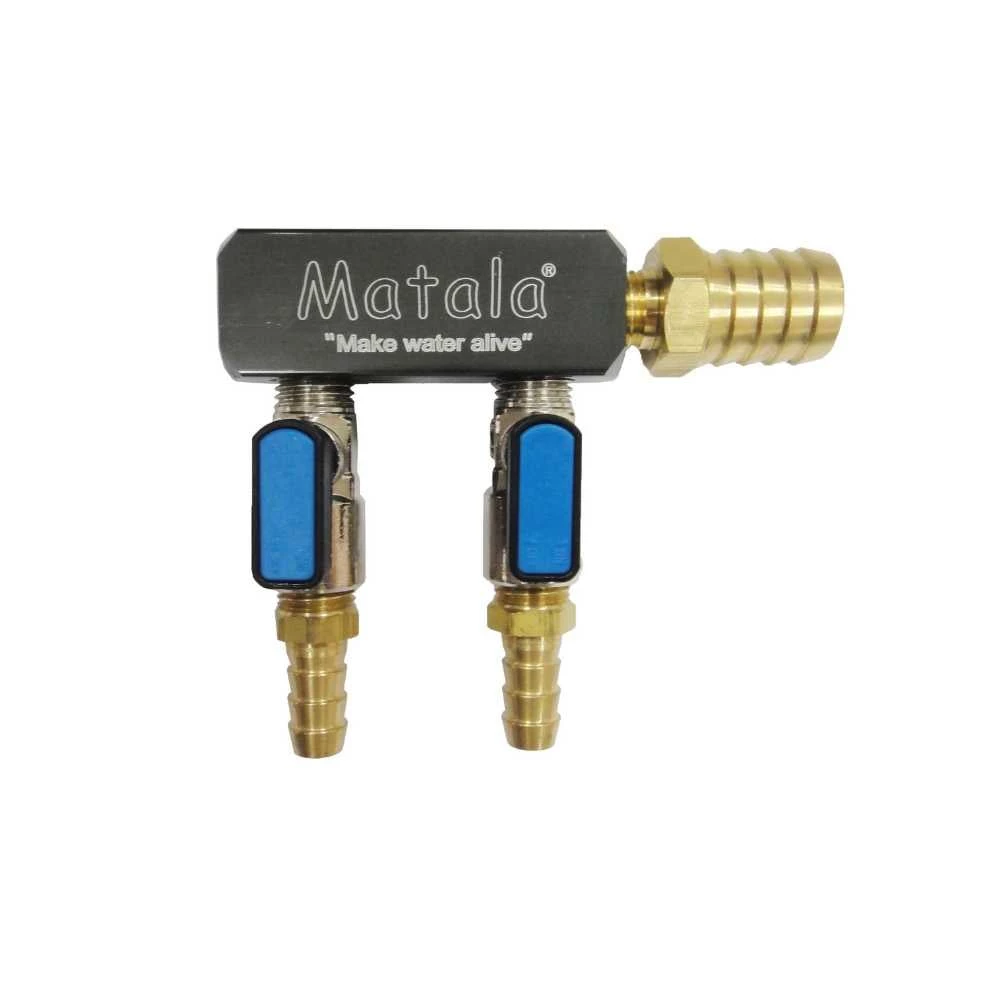 The Matala Heavy Duty Air Manifold has two functions. It can decrease back pressure on your pond aeration system, and it can be used to distribute air from your aerator to several diffusers. The brass manifold connects to the air pump via a 3/4″ barb.