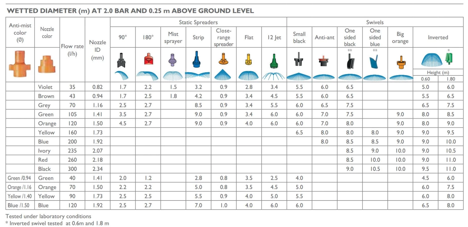 Colour-coded spreaders and swivels to suit Dan Micro Spray Heads.