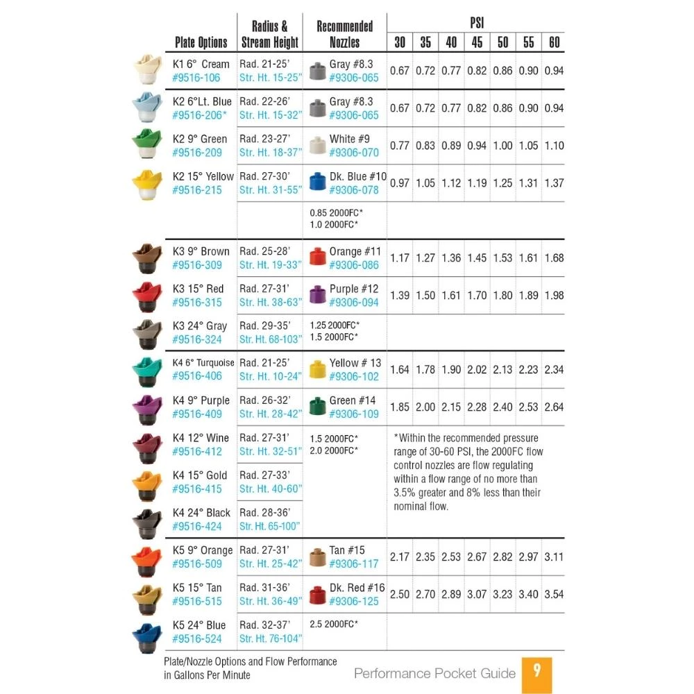 The simple, snap-apart design is durable, reliable, and easy to repair and clean. Choose from 15 different plate options to achieve optimal trajectory and throw characteristics. Applications include: under-tree irrigation and environmental control of tree fruit, vine, and tree nut crops — as well as overhead irrigation, cooling, and environmental control in tree, vine, small fruit, and nursery crops.