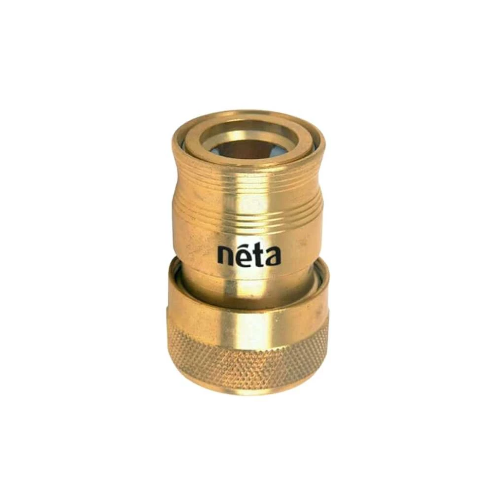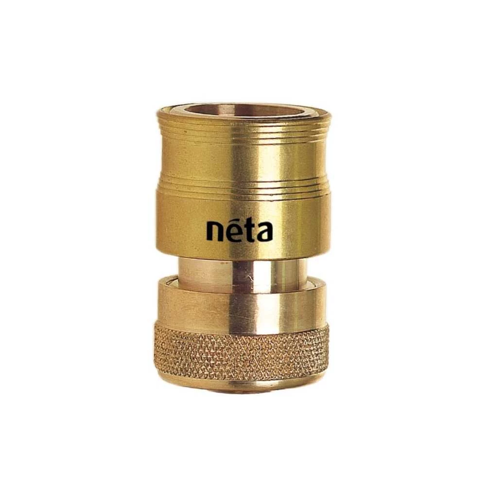 The Neta 18mm EZ Hose Connector fits 18mm hoses and easily connects to 18mm click-on couplers and tap adaptors, as well as sprinklers, sprayers, nozzles and guns. It features the Neta X-Stream lock ring.
