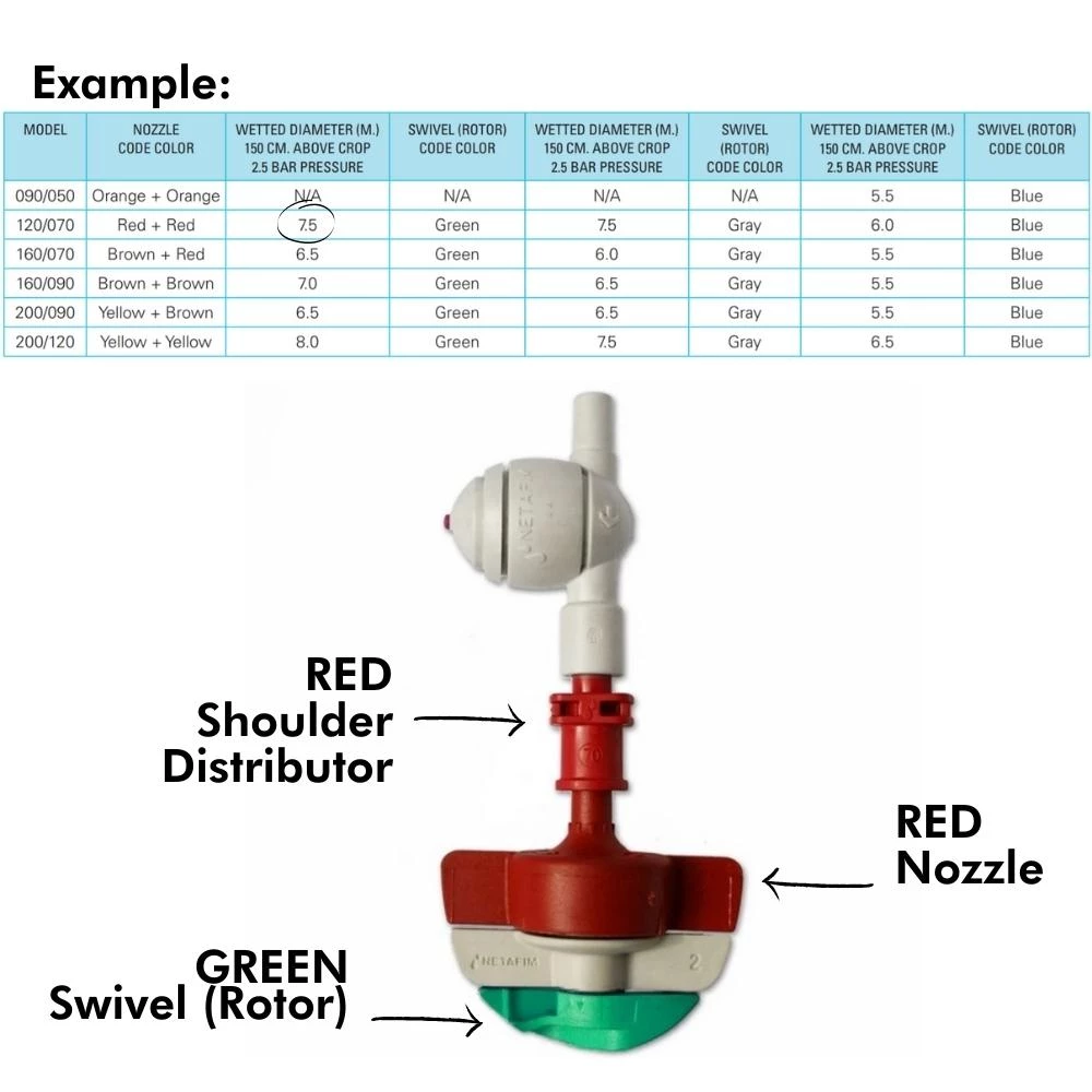 Compatible for use with the Netafim SpinNet™ micro sprinkler head, the SD device, or shoulder distributor provides a high level of uniformity within a closely spaced “strip of sprinklers”, also known as the SpinNet™ SD.