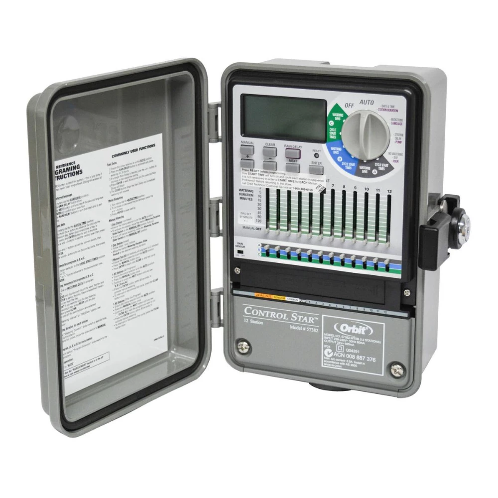 - Seven operation modes: Auto, Manual, Extra, Test, Rain Delay, Water Budgeting, Off.