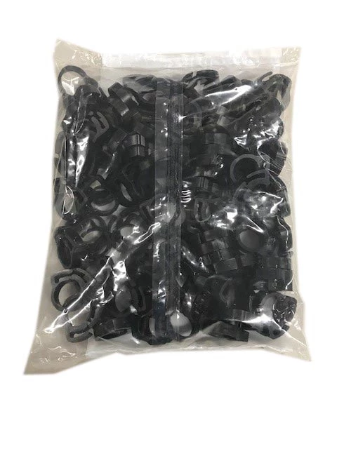 Clamps with a ratchet fit used to secure poly pipe to barbed tail fittings. They should be used every time a barbed tail fitting is used.