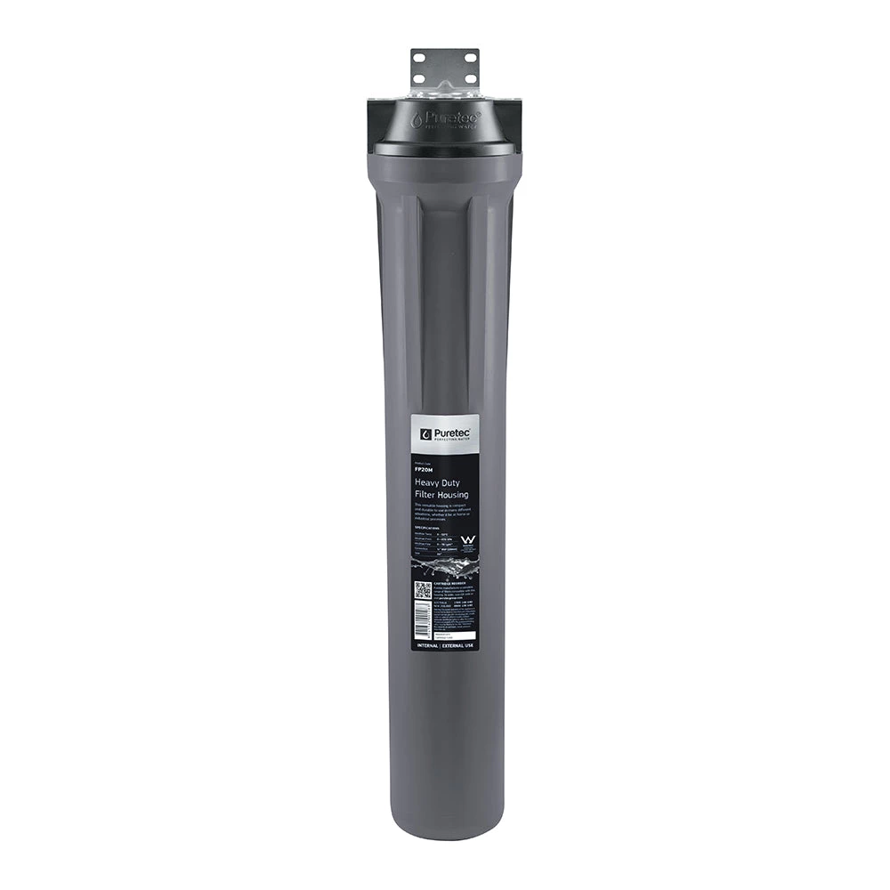 The Puretec FP Series Heavy Duty Filter Housings are composed of FDA approved materials polypropylene and SAN. They are