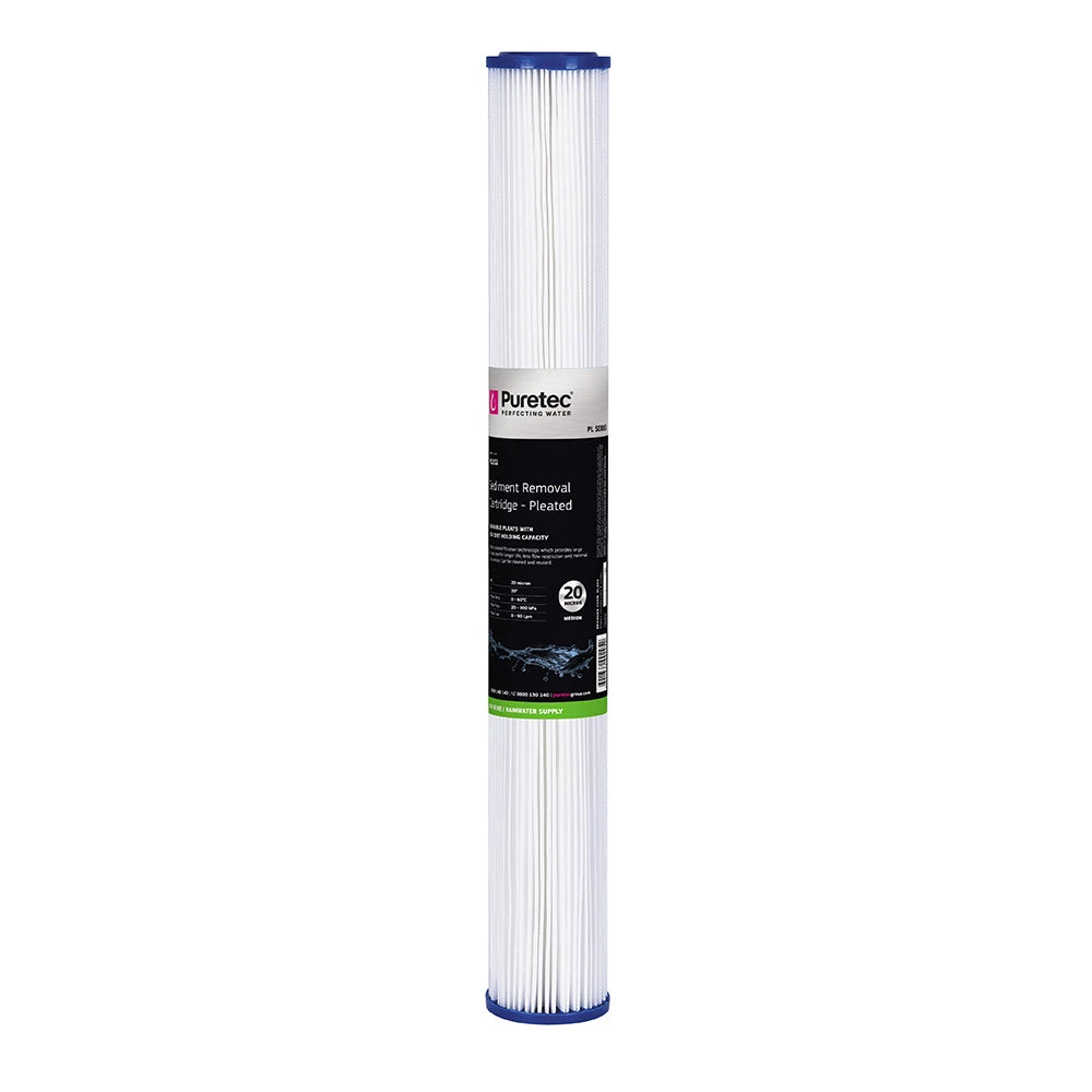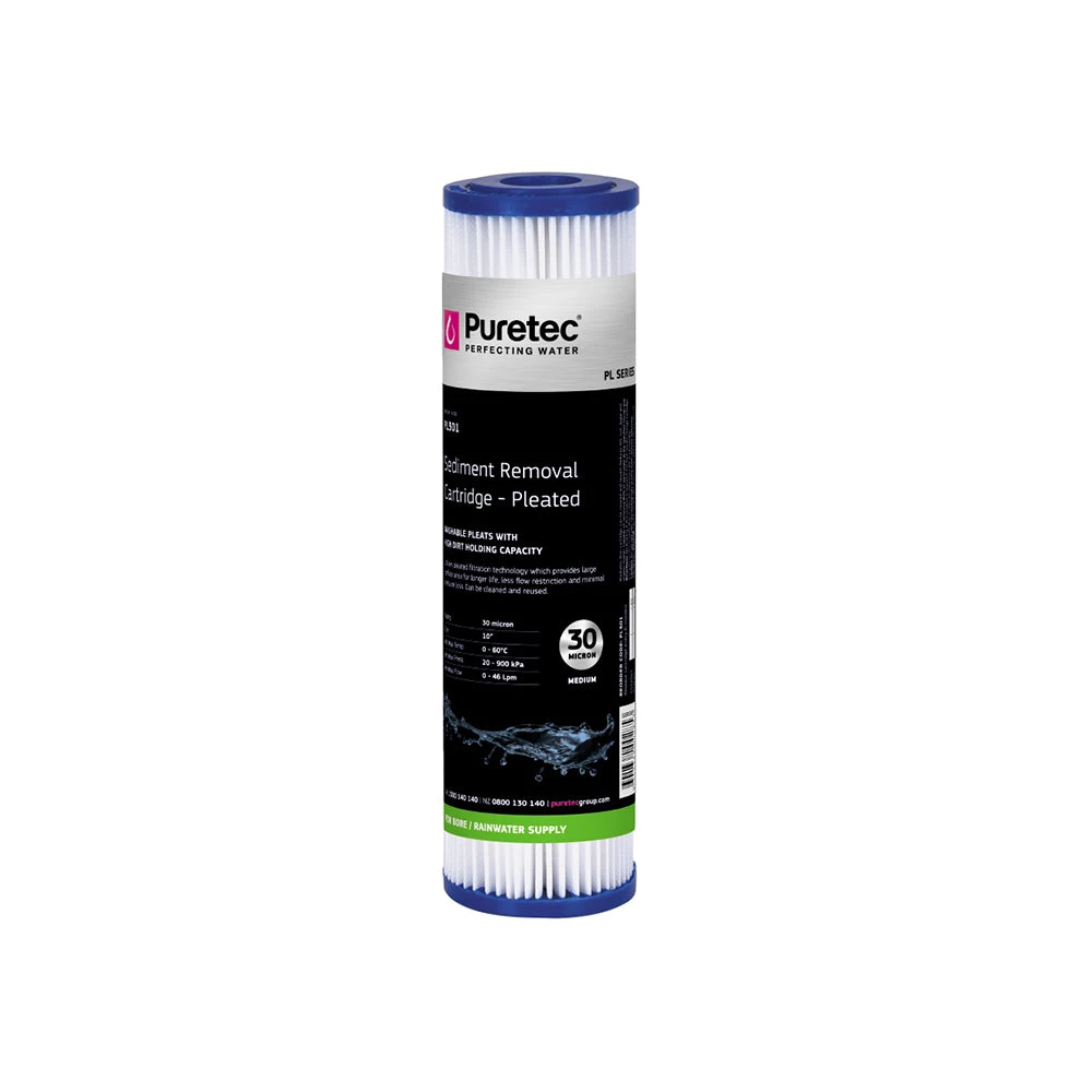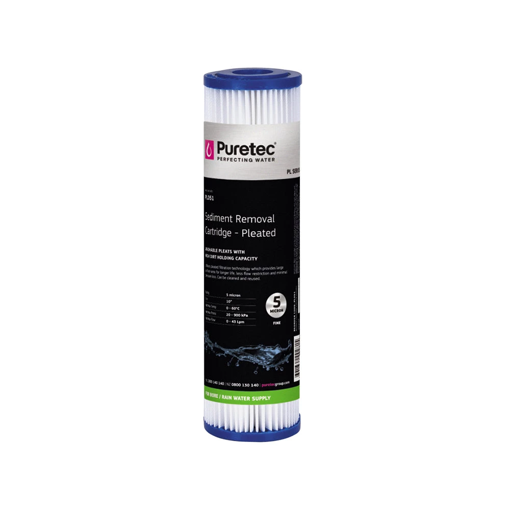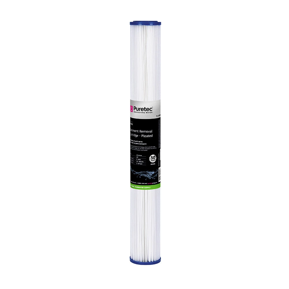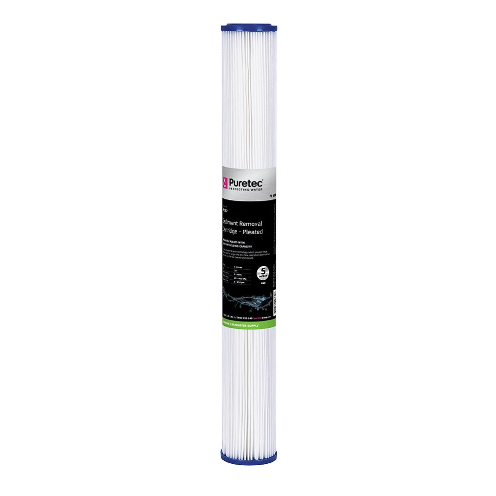 The Puretec Pleated Sediment cartridges are used where large surface area filtration is required, in high dirt holding capacity applications. The PL Series are used for sediment, scale and rust removal and have the advantage of low pressure drops and less flow restriction than comparable cartridges.