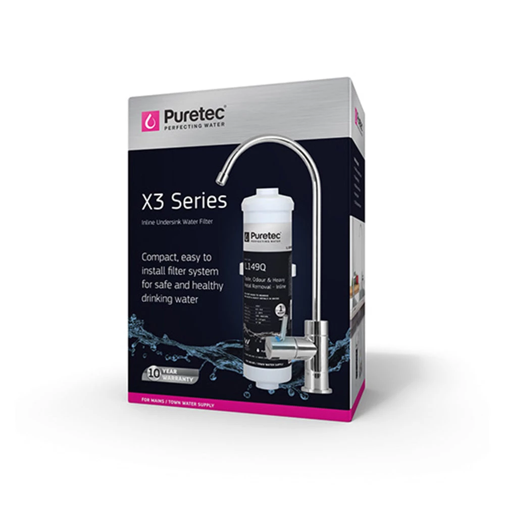 Compact, easy to install filter system for safe and healthy drinking water. The Puretec X3 Series system includes premium grade KDF media that inhibits bacteria and effectively reduces chlorine, sediment, bad taste, odours and heavy metals to leave you with beautiful tasting drinking water. This system can be used for MAINS and TOWN water supplies.