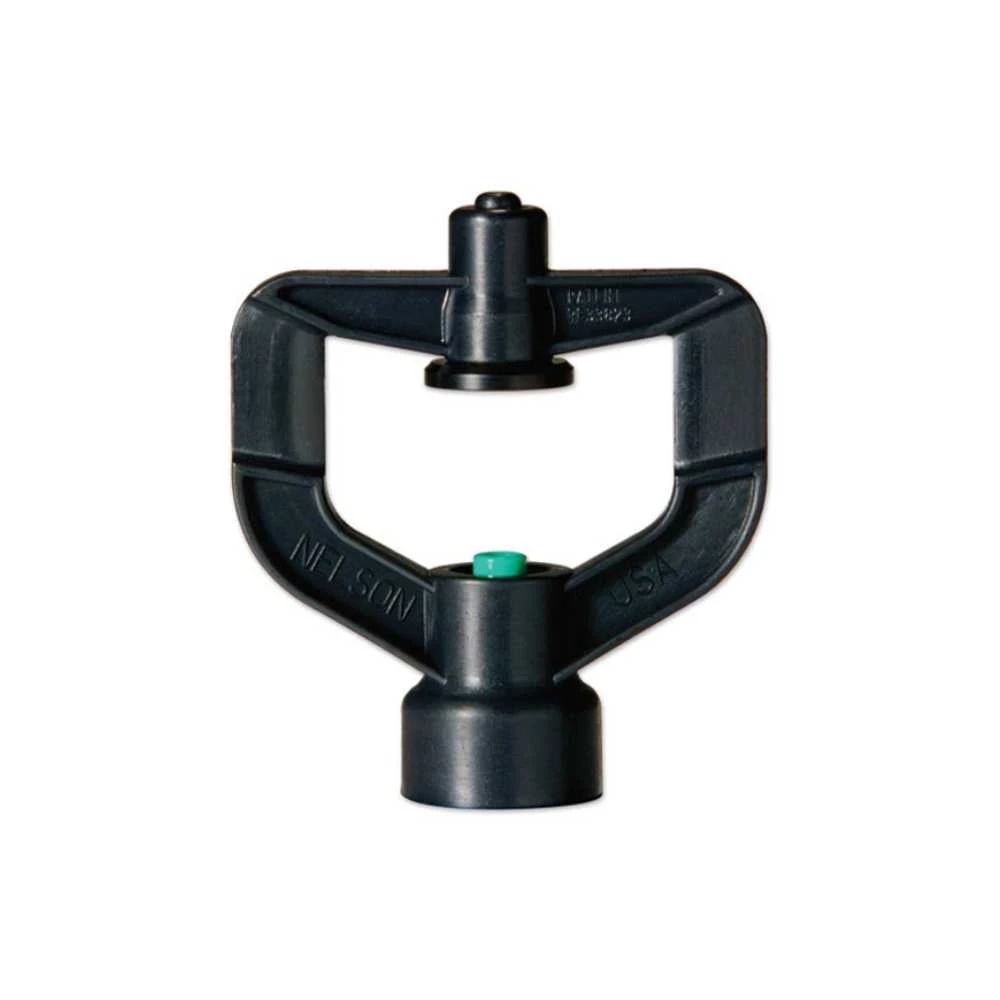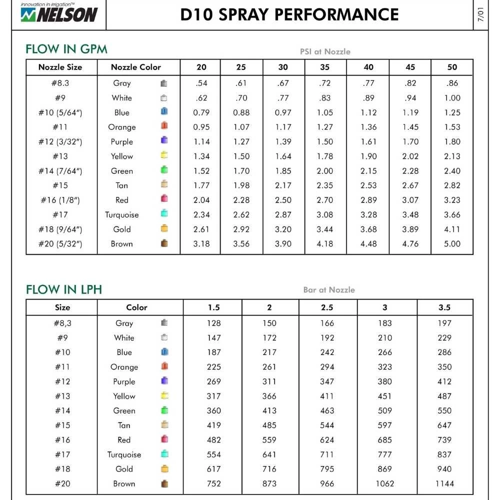 The Nelson D10 Spray for irrigation of delicate plant material, for misting, and for short radius applications is now available. It provides a flat continuous spray and can be mounted upright or inverted. It is available with the same adapters, nozzles, and accessories as the S10 spinner.