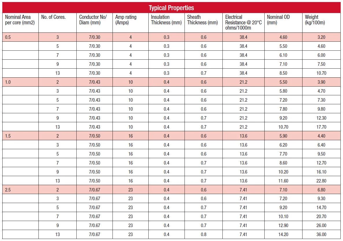 Multicore copper wire used to connect automatic controllers to solenoid valves.